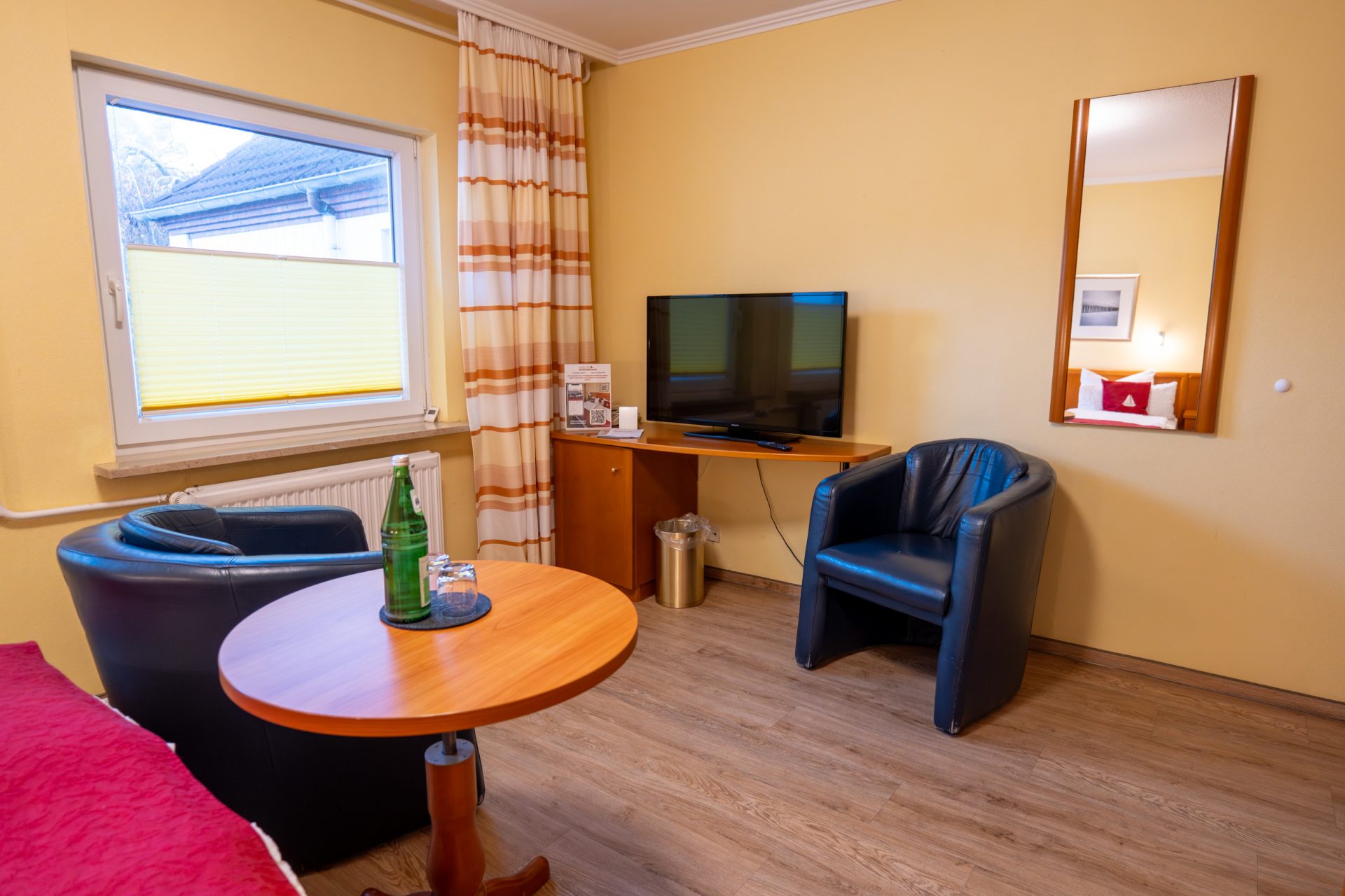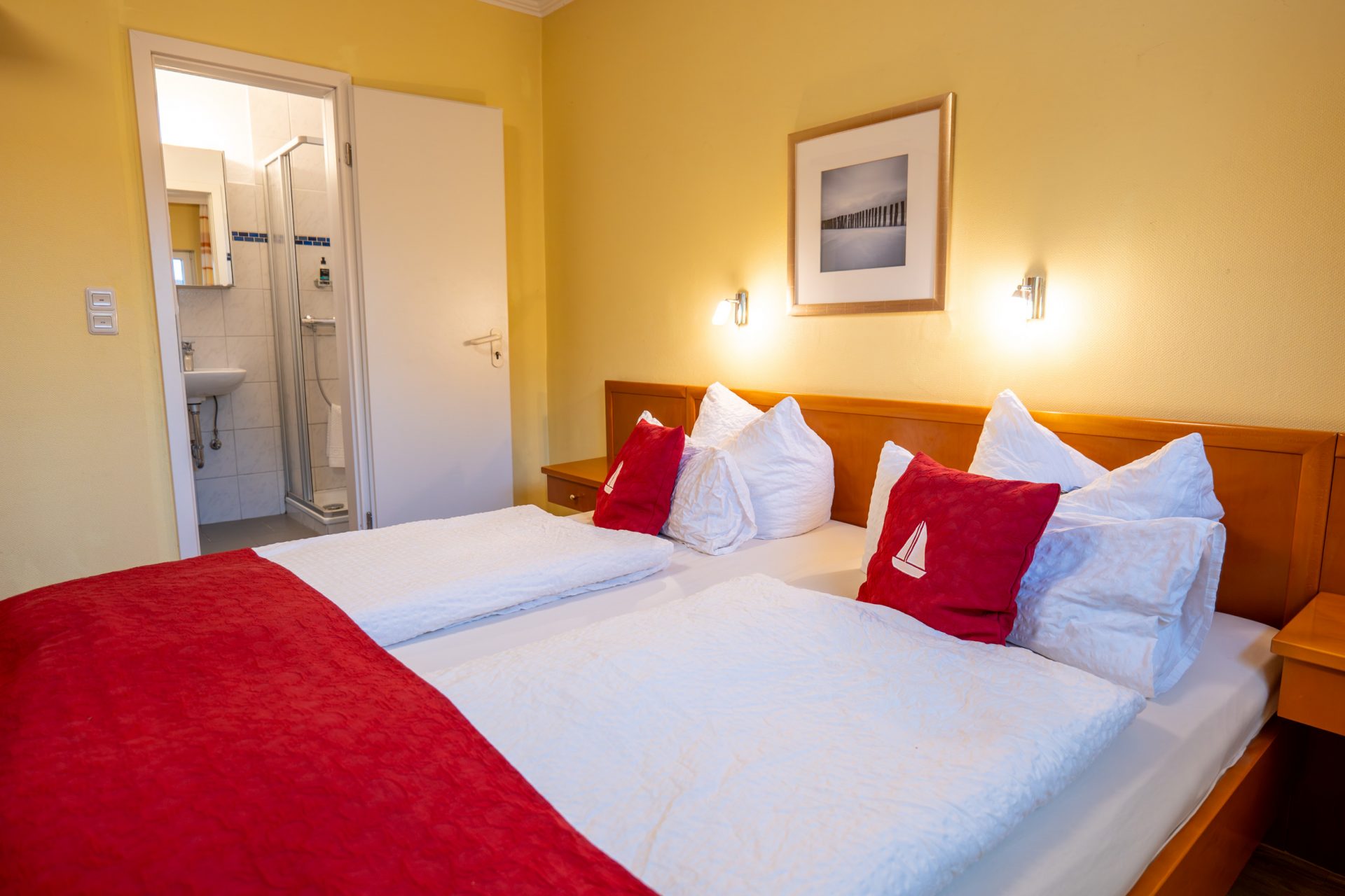 Das Doppelzimmer empfängt Sie mit einem hellen, gemütlichen Ambiente und bietet alles, was Sie für einen erholsamen Aufenthalt in Büsum benötigen. Zur Ausstattung gehören ein komfortables Doppelbett, Flachbild-TV, Telefon, Radio und kostenfreies WLAN. Eine kleine Sitzgelegenheit lädt zum Entspannen ein. Im Bad finden Sie Dusche, WC und Föhn. Alle Zimmer sind Nichtraucherzimmer. Das Haus verfügt über keinen Aufzug.