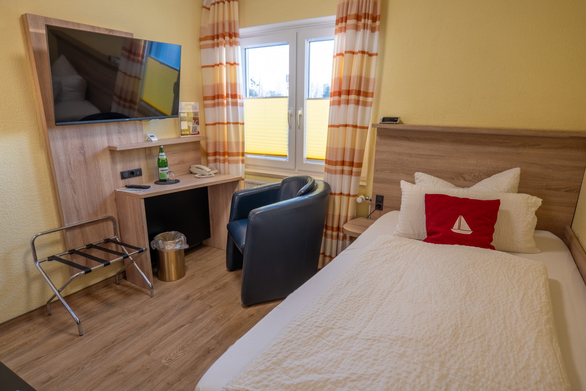 Das Einzelzimmer ist ideal für Alleinreisende. Es verfügt über ein gemütliches Einzelbett, Flachbild-TV, Telefon, Radio und kostenfreies WLAN. Eine kleine Sitzgelegenheit bietet Platz zum Lesen oder Planen Ihrer Ausflüge. Im Bad erwarten Sie Dusche, WC und Föhn. Alle Zimmer sind Nichtraucherzimmer. Das Haus verfügt über keinen Aufzug.